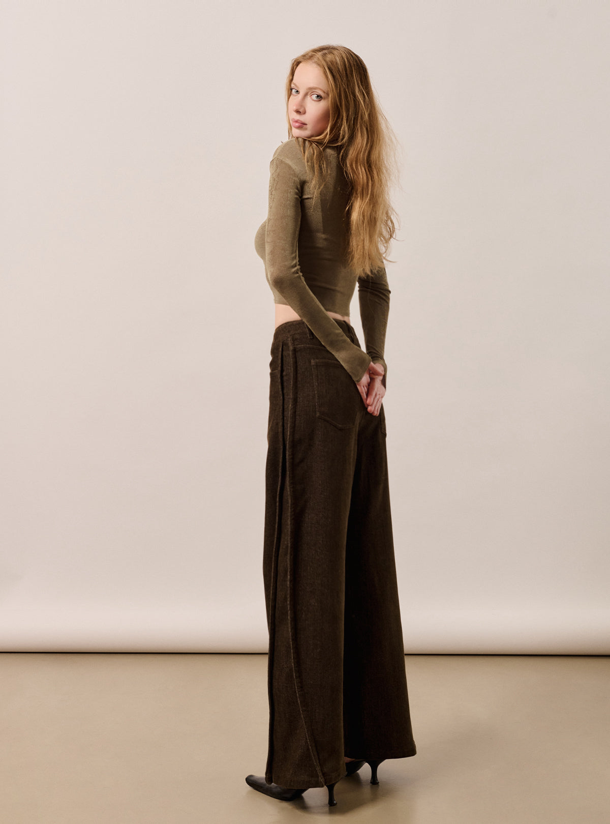 サイドのタックラインの入った、立体的なシルエットのワイドパンツ。