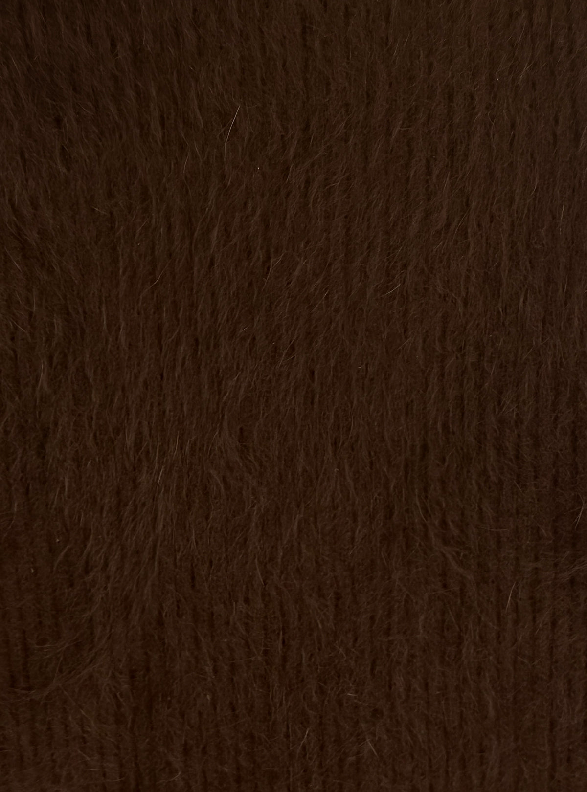 アンゴラ特有のふんわりとした立体的な表面感に、アメリカンスリーブのシルエットを掛け合わせることで、ボディラインをすっきりときれいに見せてくれます。